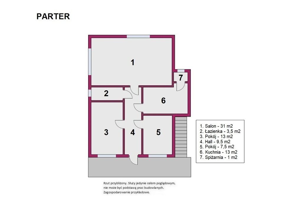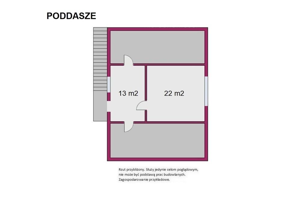 zewnętrzne schody, znajduje się duży przedsionek (13m2) oraz 22